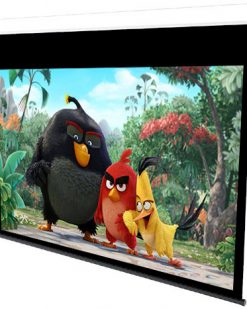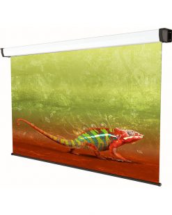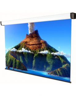 SERIE NEMA – Schermo manuale a molla, tela bianca bordata autobloccante ogni 13 cm con luce netta di proiezione 230×129 cm.