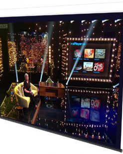 SERIE PLATINUM – Schermo manuale a molla, autobloccante ogni 13 cm con luce netta di proiezione 155X87 cm.