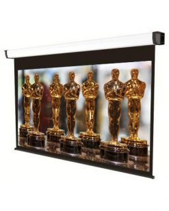SERIE PLATINUM – Schermo manuale a molla, autobloccante ogni 13 cm con luce netta di proiezione 240×135 cm.