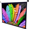 Il sistema a molla permette il bloccaggio della tela ogni 13 cm, con blocco molla. Lo schermo è bordato con bordi neri di 5 cm nelle parti laterali ed inferiori, mentre il bordo superiore è di 15 cm.