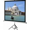 Schermo a treppiede, leggero e trasportabile; Area di visione 230×129 cm tela bordata retro nero.