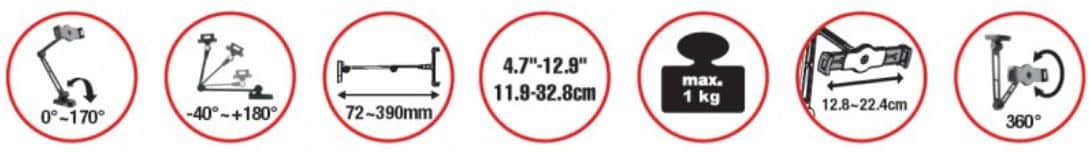 Dimensioni schermo da 7 a 11"Posizione Portrait / Landscape  Trasportabile